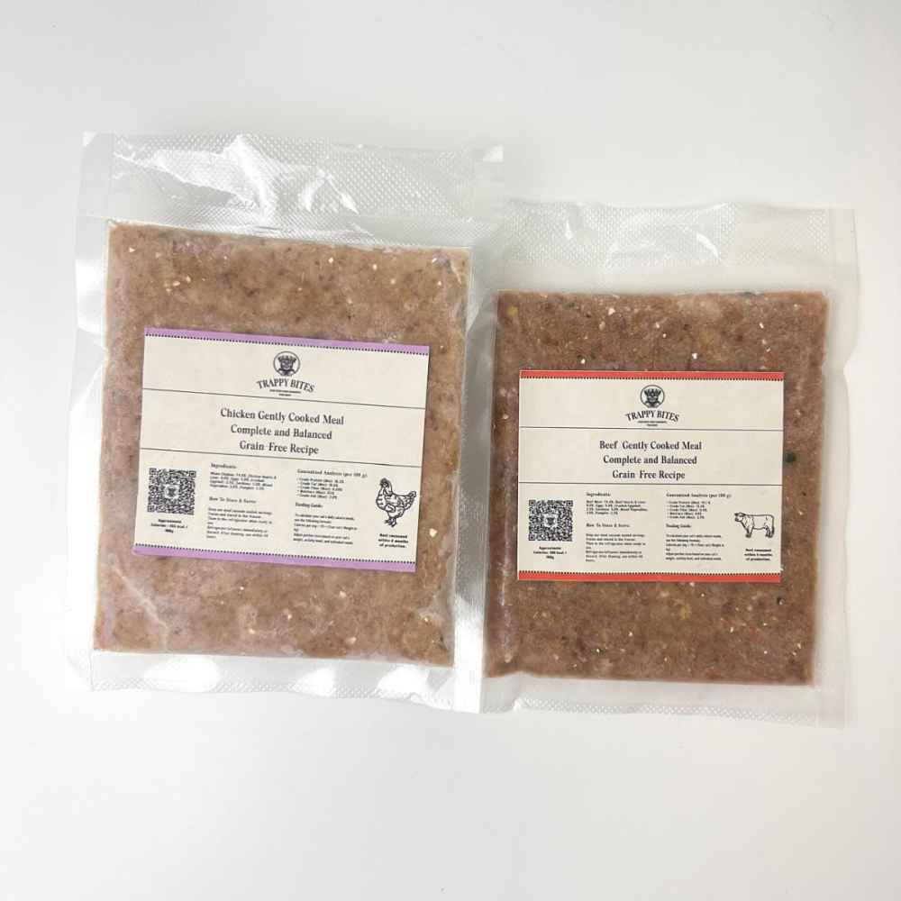 Trappy Bites Chicken Meal Pack provides you with complete meals weighing 150g per meal, carefully balanced according to AAFCO/FEDIAF standards, suitable for all ages and breeds, and ideal for picky or sensitive cats.